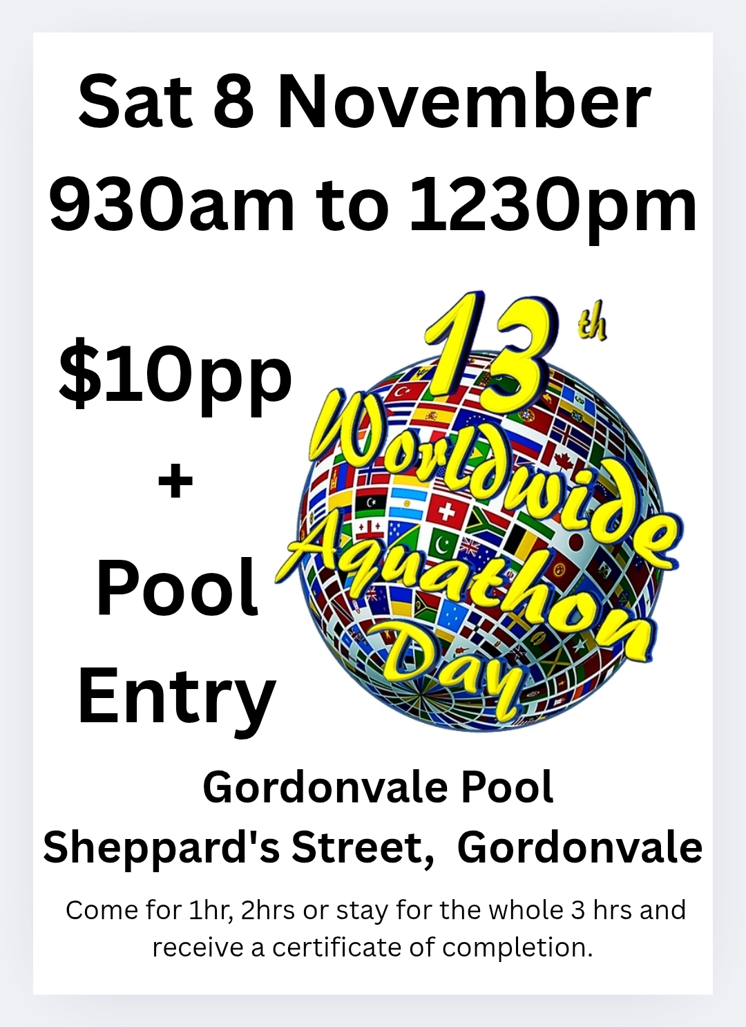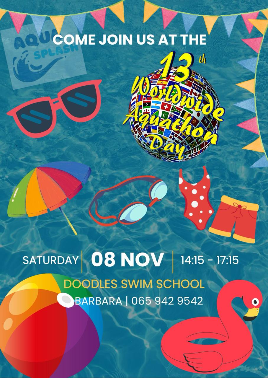 Come join us for 3 hours of Aqua Fun at Doodles Swim School for the 13th Worldwide Aquathon Day.