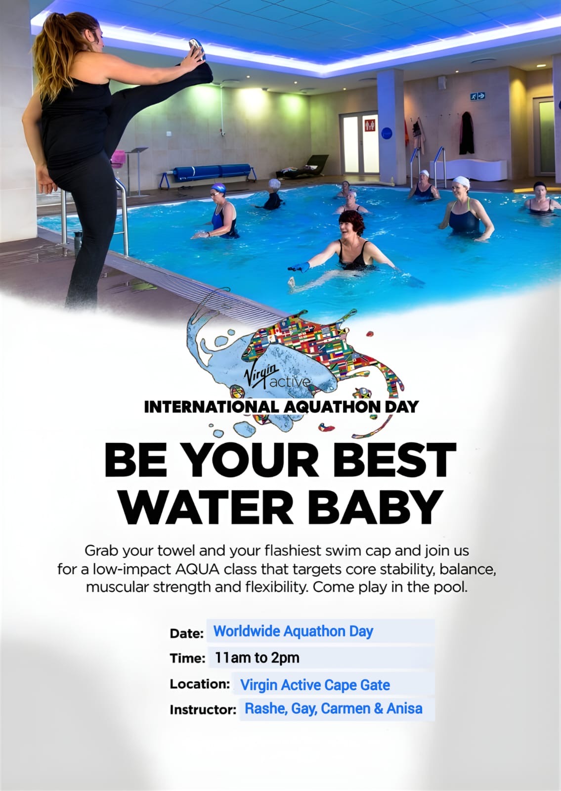 Join Simone & Chantal at Virgin Active Kyalami Corner for the MUCH ANTICIPATED WorldWide AquaThon Day!
