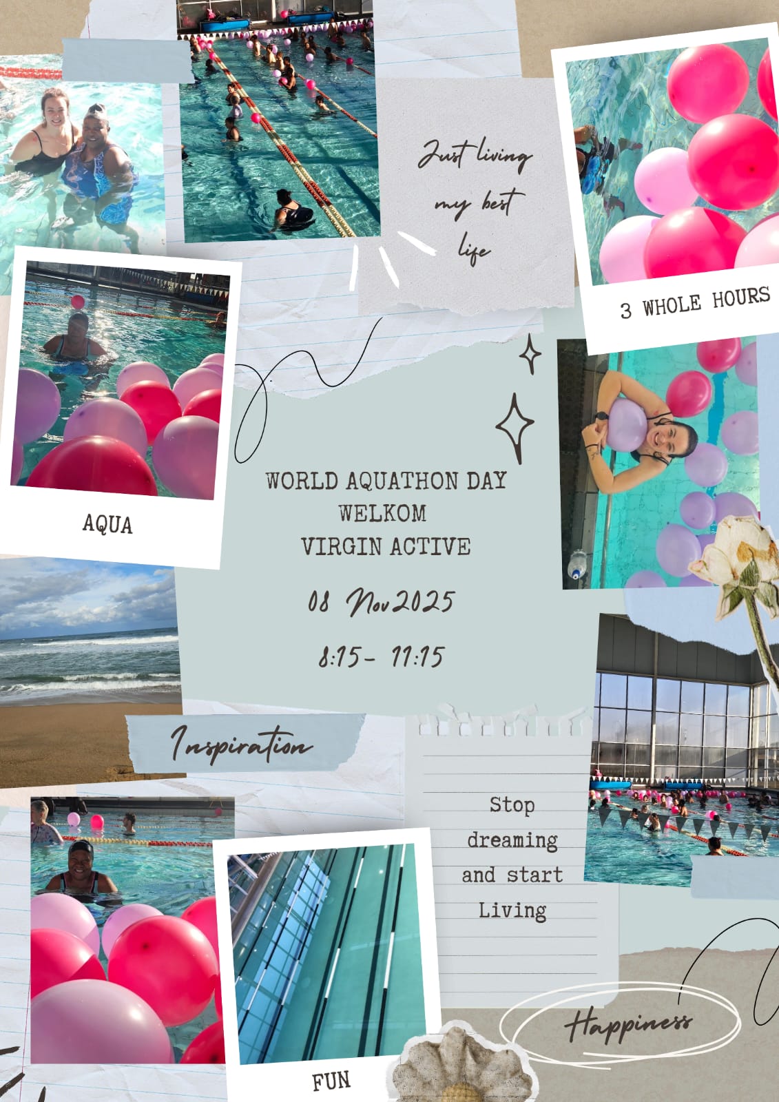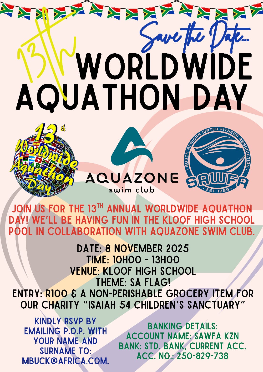 Join our instructors at Virgin active Welkom. For a 3 hour aqua marathon. invite a friend and lets make waves